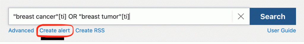Natuurlijk kan je een zoekstrategie kopiëren in een tekst document als Word zodat je hem later kan herhalen of verder ontwikkelen, maar dit kan ook in myNCBI. Dit heeft als grote voordeel dat alle zoekstrategieën makkelijk toegankelijk zijn op één locatie en myNCBI biedt meteen de aanvullende optie om e-mail alerts in te stellen wanneer er nieuwe publicaties beschikbaar zijn binnen jouw zoekstrategie.