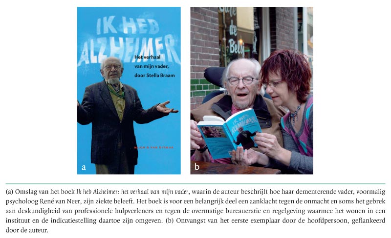 Hoe groot de impact van dementie op de patiënt is, werd recent indringend beschreven door Stella Braam in haar boek Ik heb Alzheimer: het verhaal van mijn vader (figuur).2 Zij beschrijft daarin de beleving van haar dementerende vader, voormalig psycholoog René van Neer, die vanwege zijn ziekte eerst verhuisde naar een verzorgingshuis en later naar de ‘gesloten’ afdeling van een verpleeghuis (zie de figuur). Stella Braam is erin geslaagd om uit de mond van haar vader de tragiek van het leven met dementie op te tekenen…