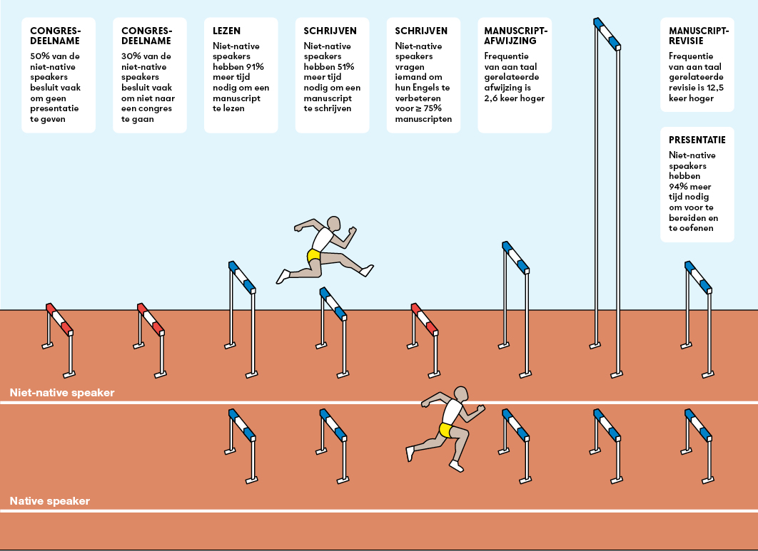 Het onderzoek laat zien dat niet-native speakers vooral in het begin van hun wetenschappelijke carrière meer tijd en energie kwijt zijn dan native speakers. De…