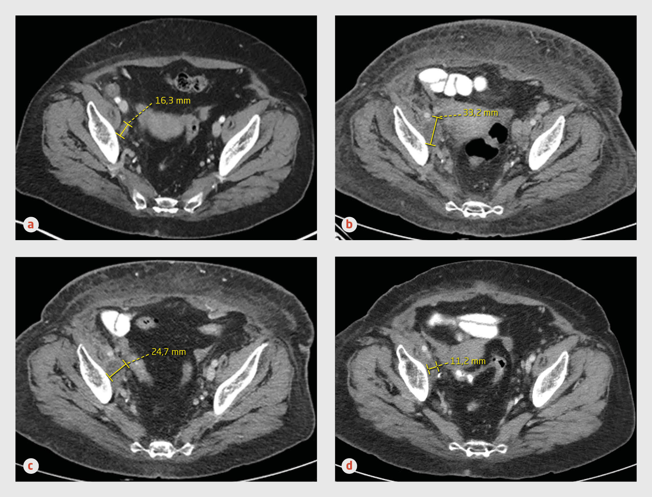 Bij responsevaluatie gedurende de opname namen de axillaire en intra-abdominale lymfekliermetastasen zowel in aantal als in grootte toe. De cutane metastase was echter wel afgenomen in grootte. Om die reden, maar ook omdat we geen aanwijzingen hadden voor een immuun-gemedieerde oorzaak van de decompensatio cordis, besloten wij de immuuntherapie te continueren.